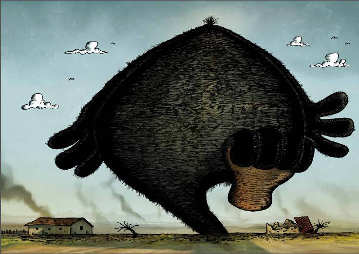 Stomp- Save (vs. Dex or Movement) or Die, note that the average 2 mile tall Bollogg has a foot 1620 feet long ad 560 feet wide.